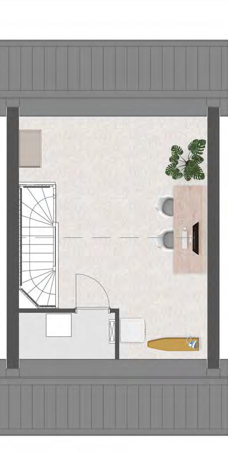 1 Indeling met overloop, (slaap)kamer en separate technische / wasruimte