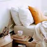 In de zithoek zorgt het donkere wandmeubel eveneens voor contrast, terwijl verder vooral lichte en natuurlijke kleuren het beeld bepalen. De gerieflijke bank met hocker nodigt uit tot lui achteroverleunen en televisie kijken. De prachtige rotanstoel kocht Emily nadat ze die bij een klant had gezien. Aan lichtinval geen gebrek, de witte shutters kunnen het daglicht zo nodig beperken of buitensluiten. De hele begane grond heeft een mooie strakke beige gietvloer; op de wanden is stucwerk en renovlies behang in rustige tinten aangebracht.