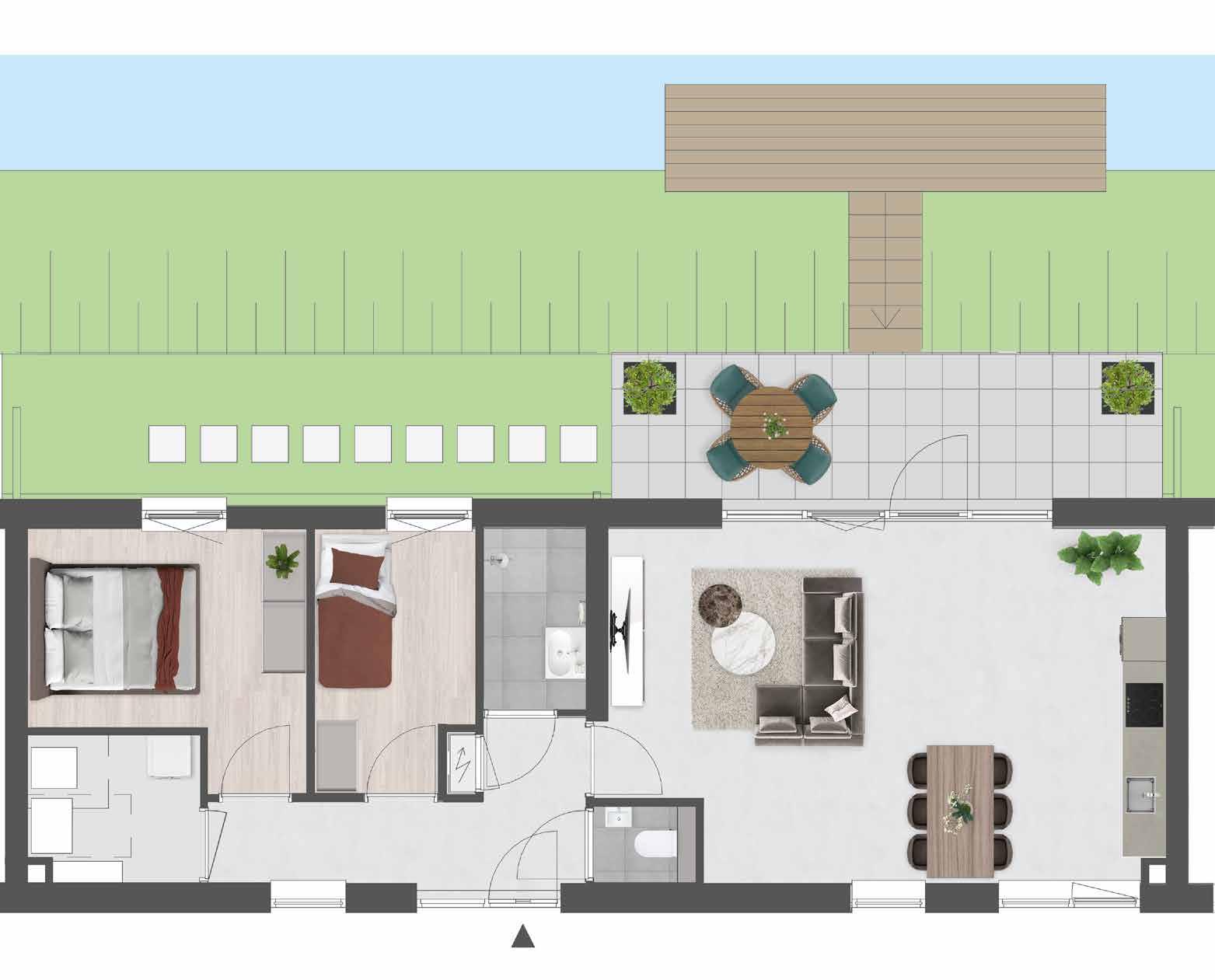 We strive to build as lean as possible. We also offer a wide variety of options so everyone can customize their apartment layout and/or finish, ensuring immediate occupancy upon completion. Our apartments are equipped with a ventilation system and hardwood window frames as standard. All our apartments meet the requirements for Nearly Zero-Energy Buildings (BENG). The apartments are designed to minimize energy consumption. The energy required is sourced as much as possible from renewable sources, such as solar panels and a ground-source heat pump.