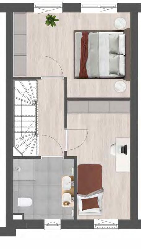• Indeling met standaard overloop, 2 (slaap) kamers en bergruimte