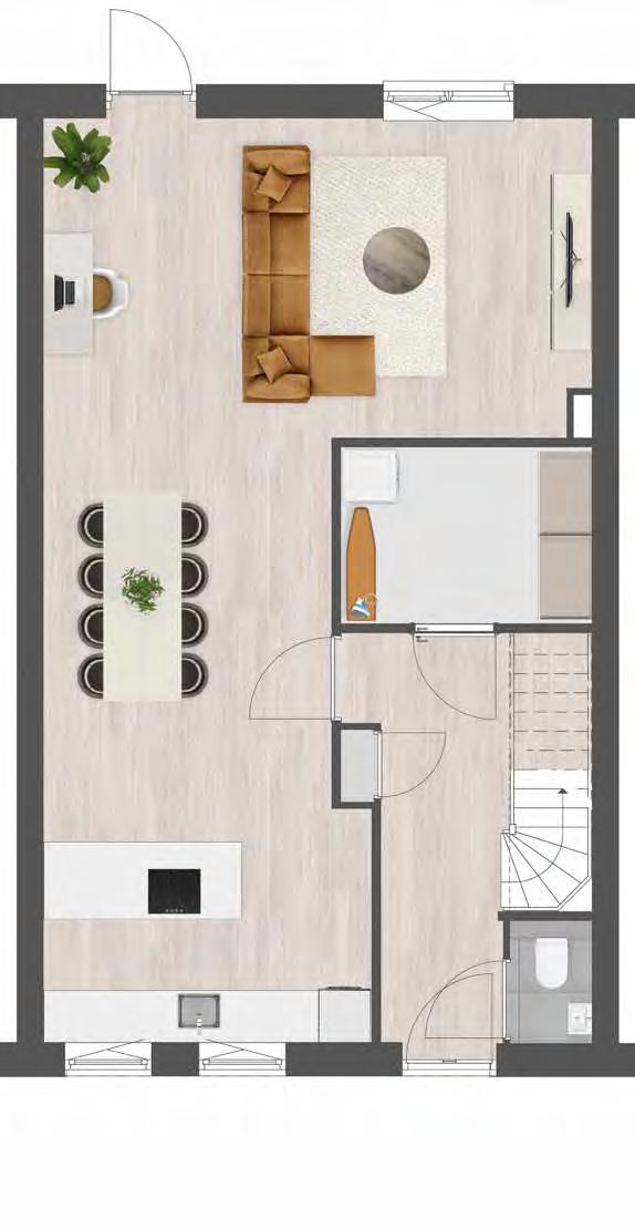 Dit Woon!magazine is bedoeld om de sfeer en de mogelijkheden van dit project te laten zien. De in dit Woon!magazine aangegeven keuken, huishoudelijke apparaten en inrichting c.q. aankleding geven een impressie van de mogelijkheden en behoren niet tot de standaard uitrusting van de woning. De juiste positie van elektra/schakelmateriaal, rookmelders, afzuigpunten t.b.v. ventilatie e.d. staan op de verkooptekeningen vermeld en zijn niet in de plattegronden opgenomen. Aan de beelden, illustraties, plattegronden en teksten in dit Woon!magazine kunnen geen rechten ontleend worden.