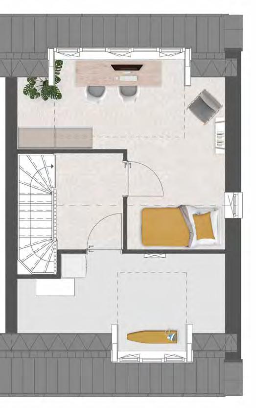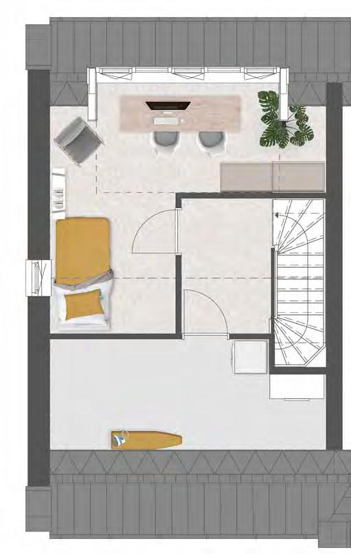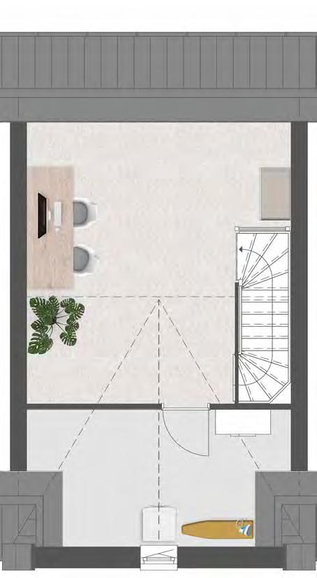 • Ruime, multifunctionele zolder, met een raam in de zijgevel