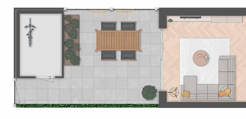 Een plek om onder het genot van een glaasje wijn de werkdag af te sluiten, samen te eten of de kinderen beschut in de frisse buitenlucht te laten spelen. Lange zomeravonden, aangename temperaturen en sfeervol samenzijn. De tuin is zoveel meer dan een extra ruimte aan het huis.