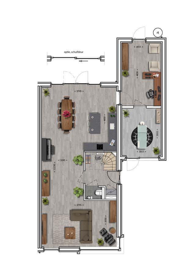 De afgebeelde visuals geven je een idee hoe jouw woonkamer en keuken er uit kunnen zien.