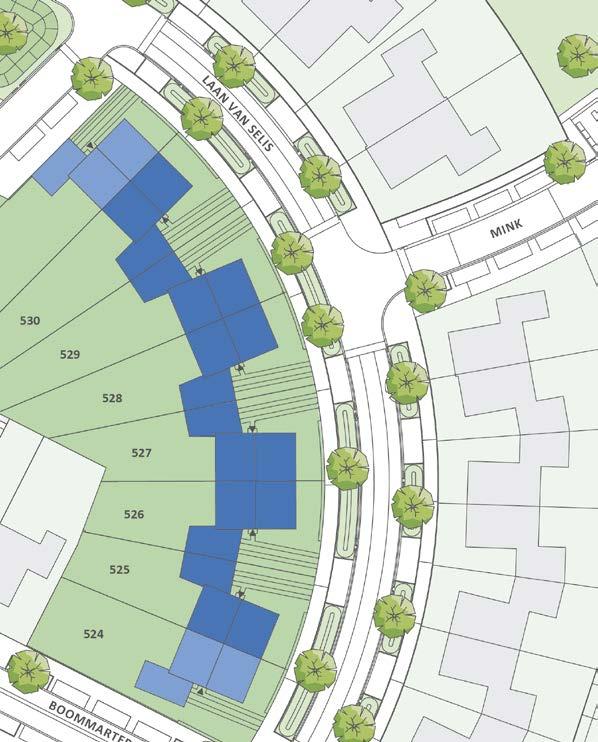 Afgebeeld zijn bouwnummers 525, 527, 529 en 531. Bouwnummers 524, 526, 528 en 530 zijn het spiegelbeeld hiervan. (Het plat dak van de garage van bouwnummers 525 t/m 530 is anders)