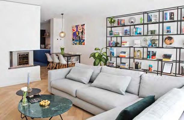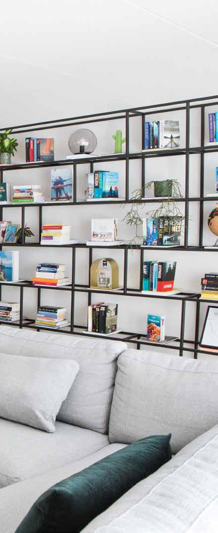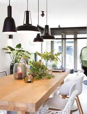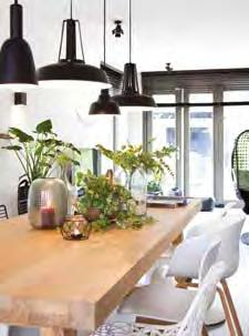 Voor de inrichting van de woning kozen Sylvia en Bart voor een mix van stijlen, van Piet Boon-stijl tot grafisch en van industrieel tot botanisch. ”Het is de kunst er dan toch een eenheid van te maken”, zegt Sylvia, die bovendien graag Marktplaats afstruint op zoek naar bijzondere items, zoals de groene kist op wieltjes die tegen de muur met ‘beton-look’ staat.