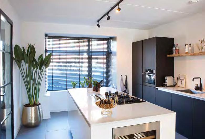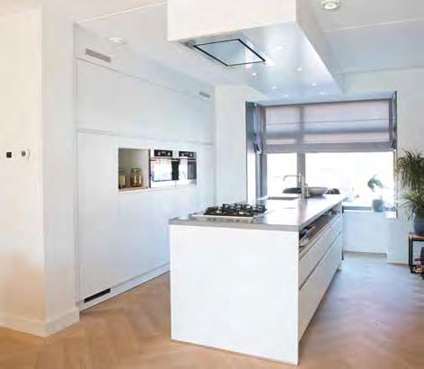 “We hebben gekozen voor een vrij lange keuken, met een lang aanrecht. In de showroom hebben ze ons goed geadviseerd over de inrichting. We hebben het lekker praktisch gehouden; we zijn geen mensen die uren in de keuken staan. Veel werkruimte, handige apparatuur, alles in mat witte kleuren en voldoende plek om er –dankzij 4 krukken – ook te kunnen ontbijten.”