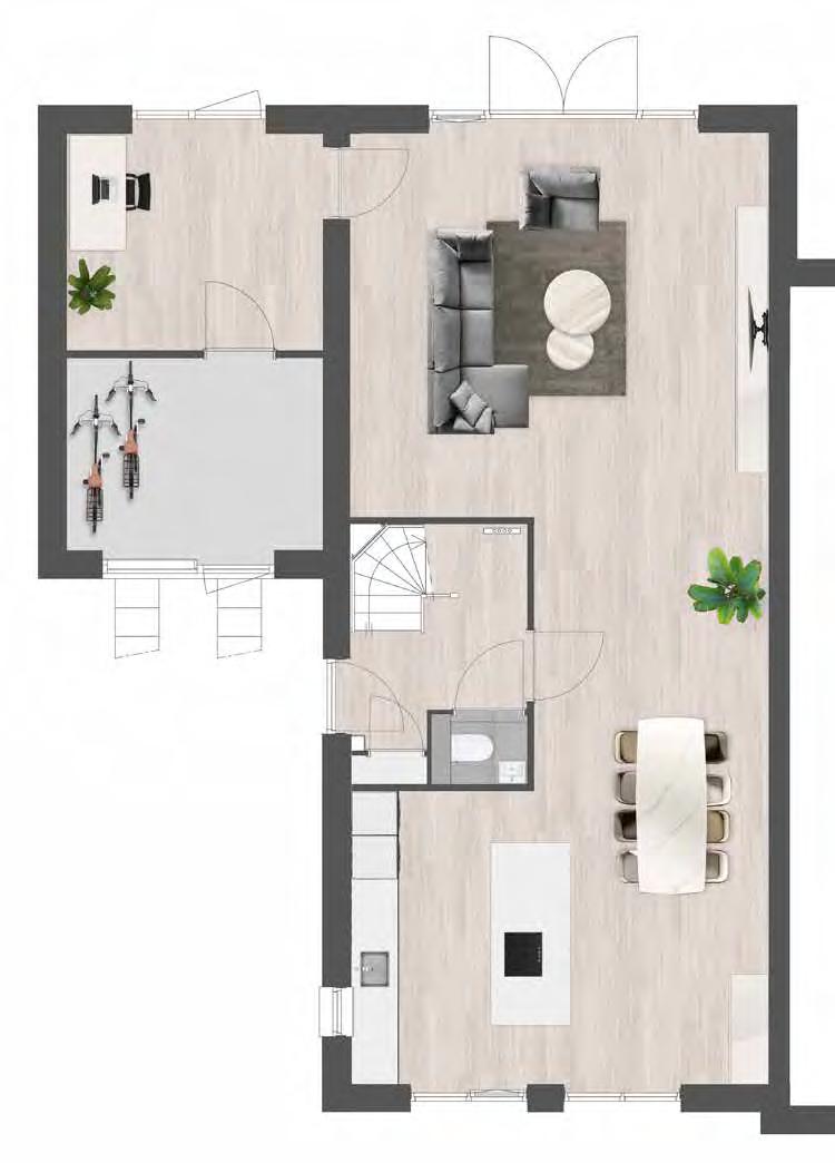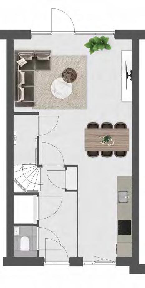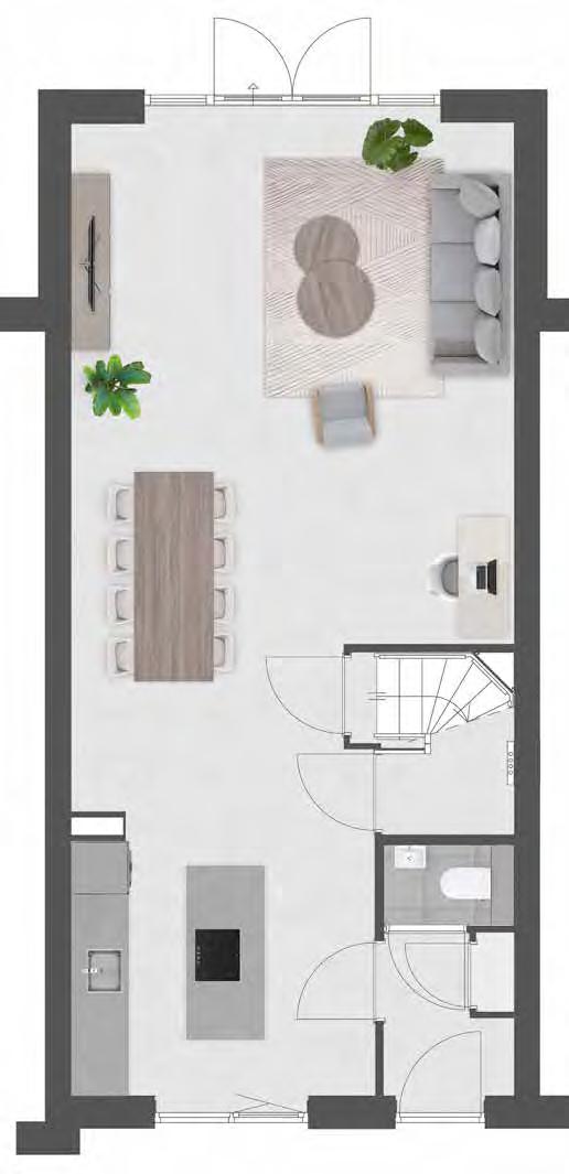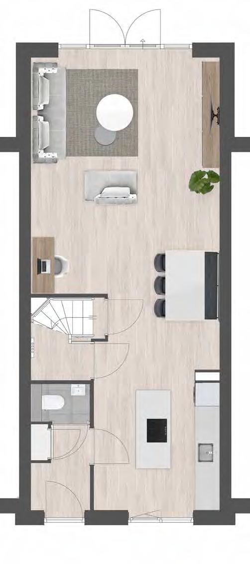 Dit Woon!magazine is bedoeld om de sfeer en de mogelijkheden van dit project te laten zien. De in dit Woon!magazine aangegeven keuken, huishoudelijke apparaten en inrichting c.q. aankleding geven een impressie van de mogelijkheden en behoren niet tot de standaard uitrusting van de woning. De juiste positie van elektra/schakelmateriaal, rookmelders, afzuigpunten t.b.v. ventilatie e.d. staan op de verkooptekeningen vermeld en zijn niet in de plattegronden opgenomen. Aan de beelden, illustraties, plattegronden en teksten in dit Woon!magazine kunnen geen rechten ontleend worden.