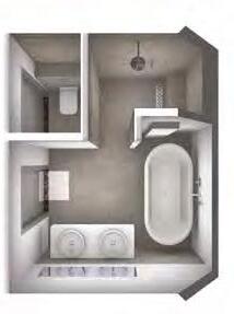 De badkamer is extra groot uitgevoerd met een dubbele wastafel, een ovalen ligbad en een ruime inloopdouche.