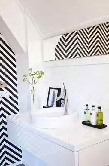 “Dat was prima. Veel keuze, goed advies. We hadden zelf al van alles bedacht en er werd ontzettend goed meegedacht.” Zo is voor Sylvia in de vrij lange slaapkamer een nis met kasten en eigen wastafel gerealiseerd met opvallend zwart-wit behang.