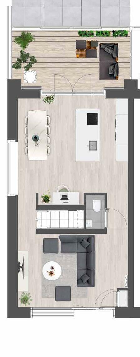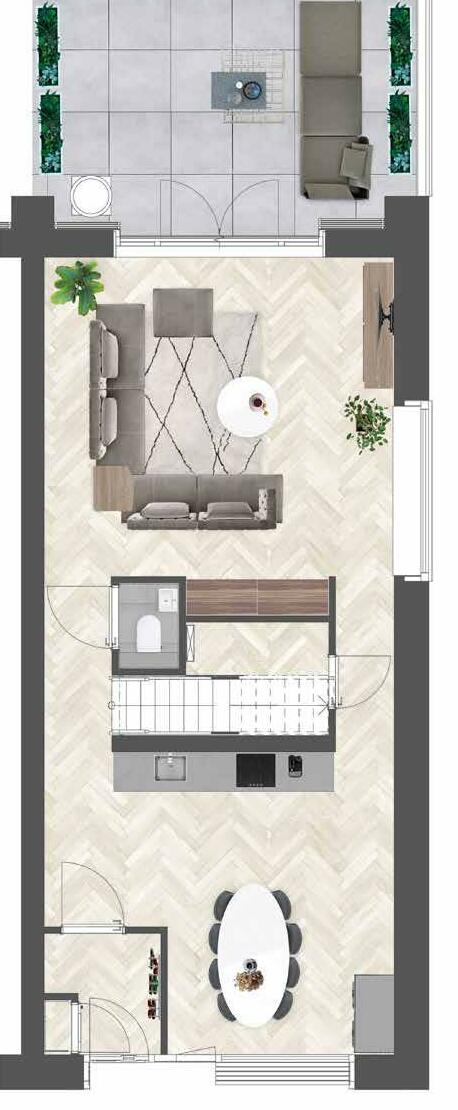 This Woon! magazine intends to show the atmosphere and possibilities of this project. The kitchen, household appliances and furnishing and/or furnishings shown in this Woon! magazine offer an impression of the possibilities and are not part of the standard equipment in the home. The correct position of electricity/switchgear, smoke detectors, extraction points for ventilation, etc. are stated on the sales drawings and are not included in the floor plans. No rights can be derived from the images, illustrations, plans and texts in this Woon! magazine.