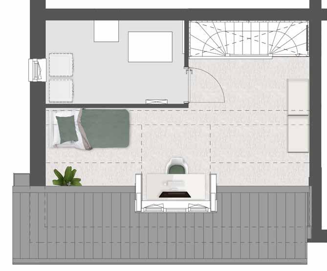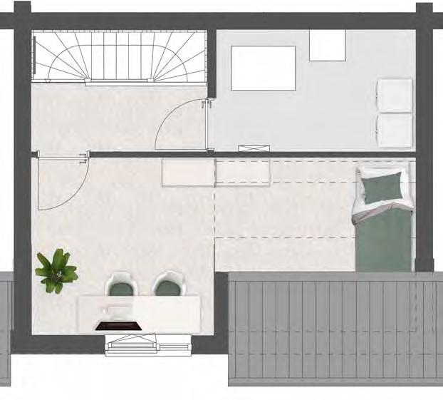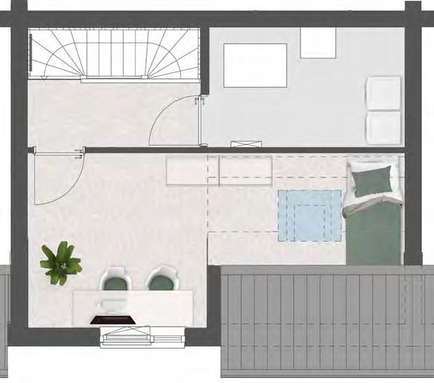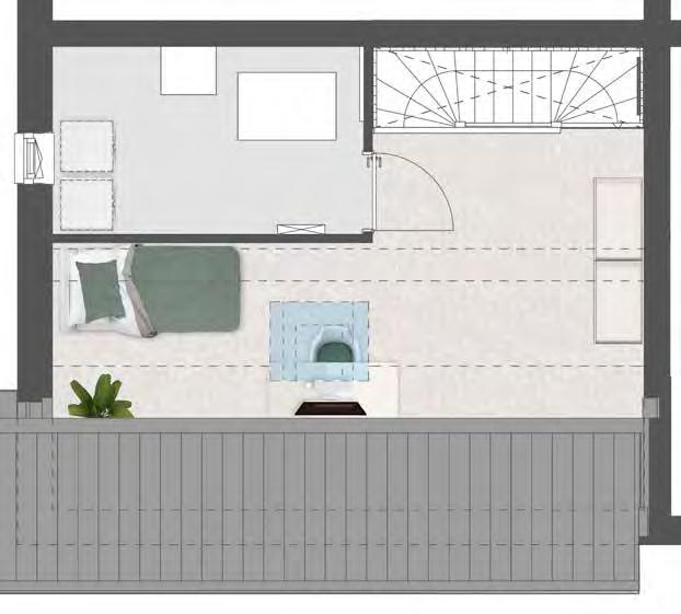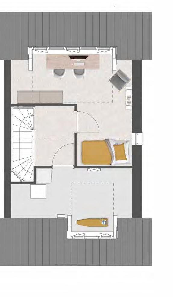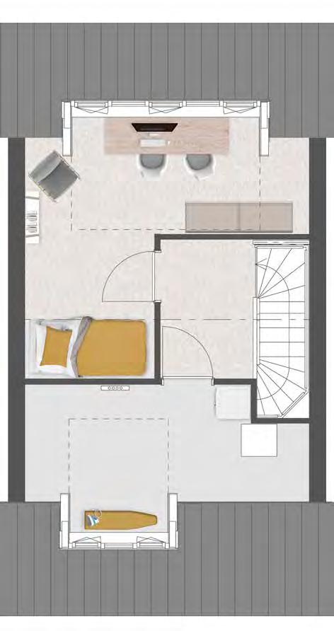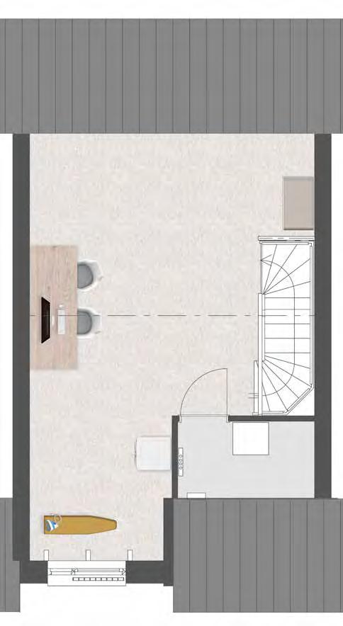 • Indeling met overloop en (slaap)kamer en technische/wasruimte