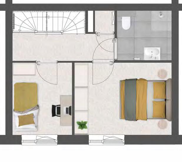 Standaard 2 (slaap)kamers op de verdieping en complete badkamer