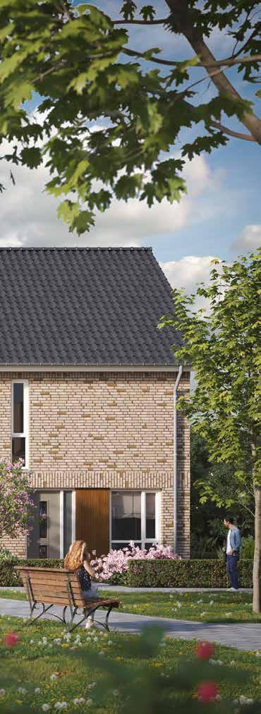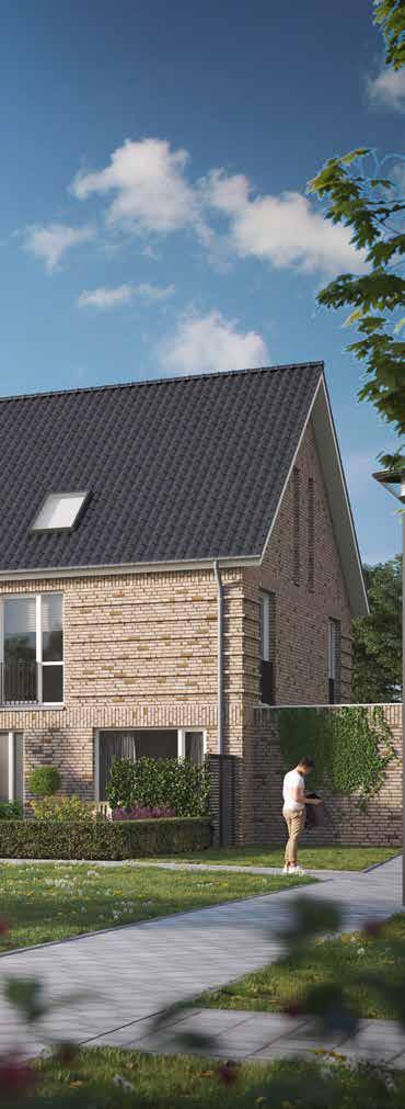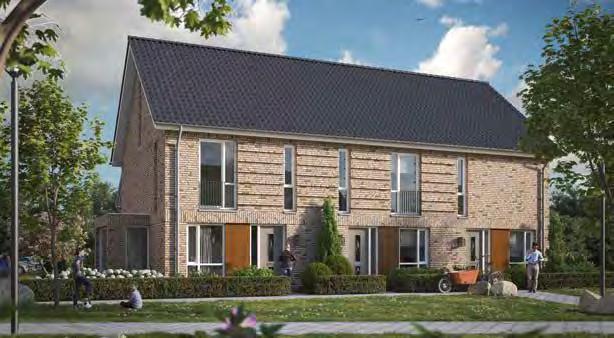 “Bij het ontwerp van de woningen hebben we uiteraard veel rekening gehouden met de ligging om het parkje. Zo kwamen we op de keuze voor een aardse, geel gemêleerde baksteen. Die past mooi bij het groen van de omgeving. Ook de houten afscheiding tussen de voordeur en het raamkozijn op de benedenverdieping accentueert het natuurlijke karakter van deze locatie. Om die reden hebben we de kozijnen tot vloerhoogte doorgetrokken, zodat er een maximaal uitzicht naar het park is. Om de langere dakrijen te onderbreken hebben we de dakkapel tot boven doorgemetseld. Ook de Franse balkonnetjes op de bovenverdieping en de dakkapel zorgen voor een fraai accent. En dat geldt ook voor het reliëfmetselwerk en de opstaand gemetselde ‘balk’ tussen de verdiepingen. Een paar hoekwoningen zijn voorzien van een erker, wat extra wooncomfort en uitzicht biedt. Voor alle woningen geldt dat ze prachtig gelegen zijn in een groene setting.”