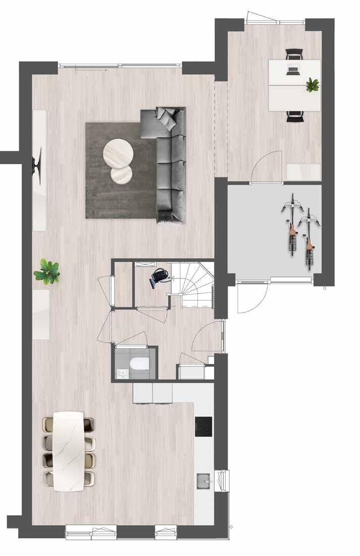 Dit Woon-magazine is bedoeld om de sfeer en de mogelijkheden van dit project te laten zien. De in dit Woon-magazine aangegeven keuken, huishoudelijke apparaten en inrichting c.q. aankleding geven een impressie van de mogelijkheden en behoren niet tot de standaard uitrusting van de woning. De juiste positie van elektra/schakelmateriaal, rookmelders, afzuigpunten t.b.v. ventilatie e.d. staan op de verkooptekeningen vermeld en zijn niet in de plattegronden opgenomen. Aan de beelden, illustraties, plattegronden en teksten in dit Woon-magazine kunnen geen rechten ontleend worden.