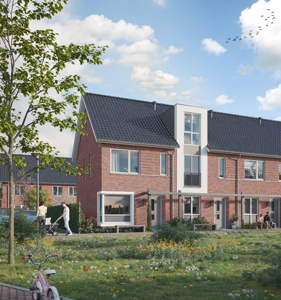 Deze woningen krijgen een dorps uiterlijk en worden toegepast in de vorm van hofjes en erven. Dit sluit mooi aan bij de groene omgeving. Alle woningen liggen op ruime percelen, met voor- en achtertuin. De tweekappers en vrijstaande woningen hebben een eigen garage met oprit. Veel woningen hebben een fraai uitzicht over het tegenoverliggende groene gebied. Kortom, je woont hier zowel binnen als buiten!