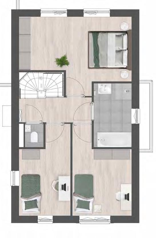 Standaard 3 (slaap)kamers op de verdieping en complete badkamer