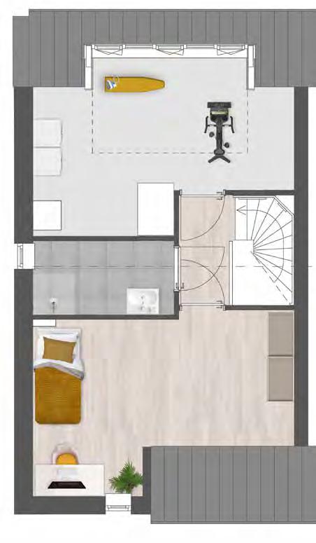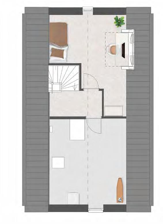 1 Indeling zolder met overloop, (slaap)kamer en technische/wasruimte