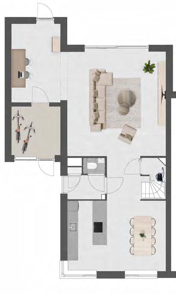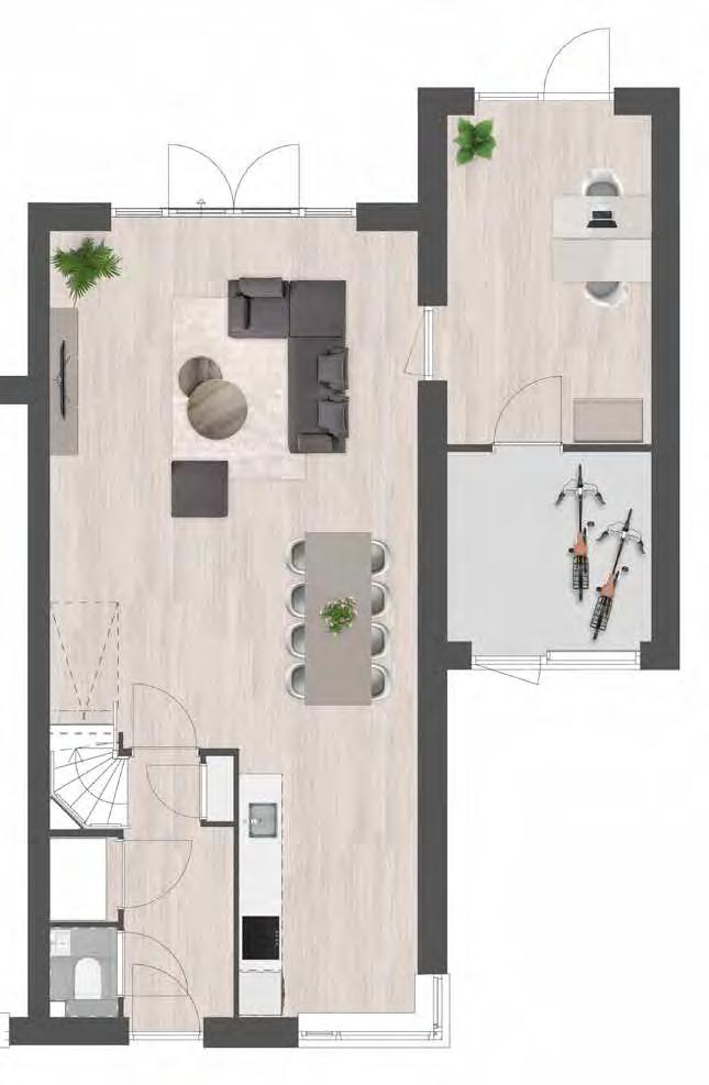 Dit Woon!magazine is bedoeld om de sfeer en de mogelijkheden van dit project te laten zien. De in dit Woon!magazine aangegeven keuken, huishoudelijke apparaten en inrichting c.q. aankleding geven een impressie van de mogelijkheden en behoren niet tot de standaard uitrusting van de woning. De juiste positie van elektra/schakelmateriaal, rookmelders, afzuigpunten t.b.v. ventilatie e.d. staan op de verkooptekeningen vermeld en zijn niet in de plattegronden opgenomen. Aan de beelden, illustraties, plattegronden en teksten in dit Woon!magazine kunnen geen rechten ontleend worden.