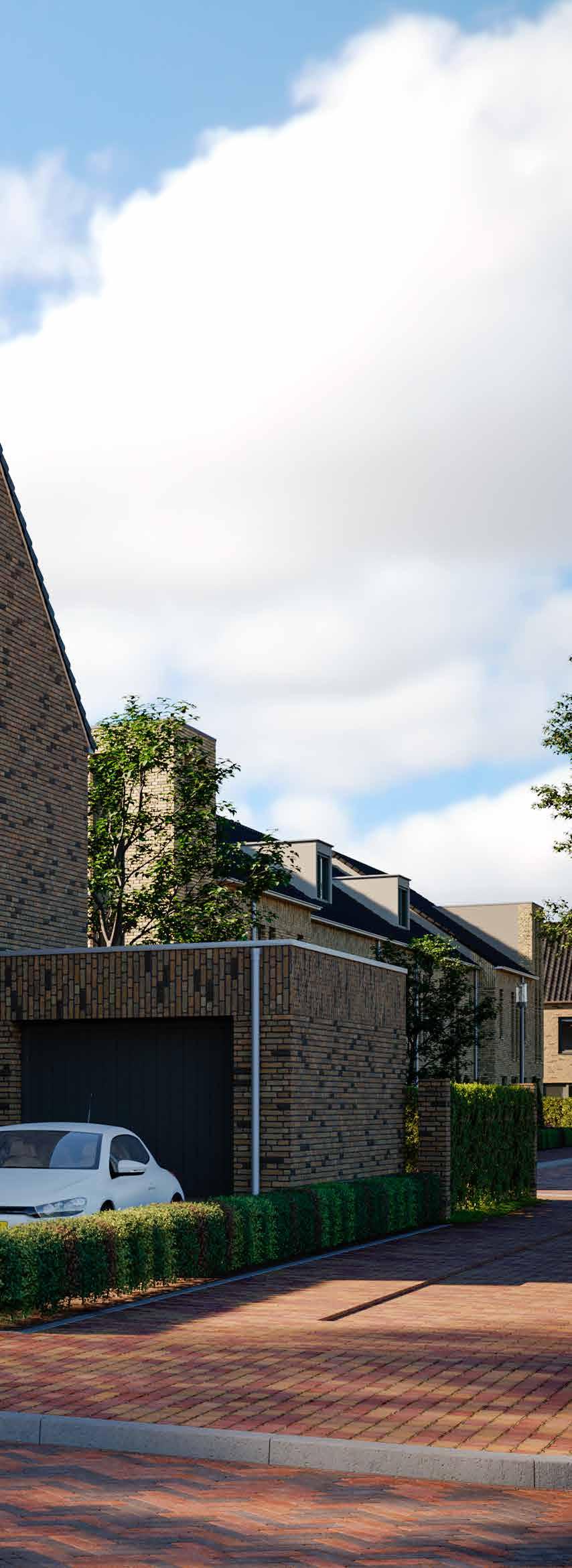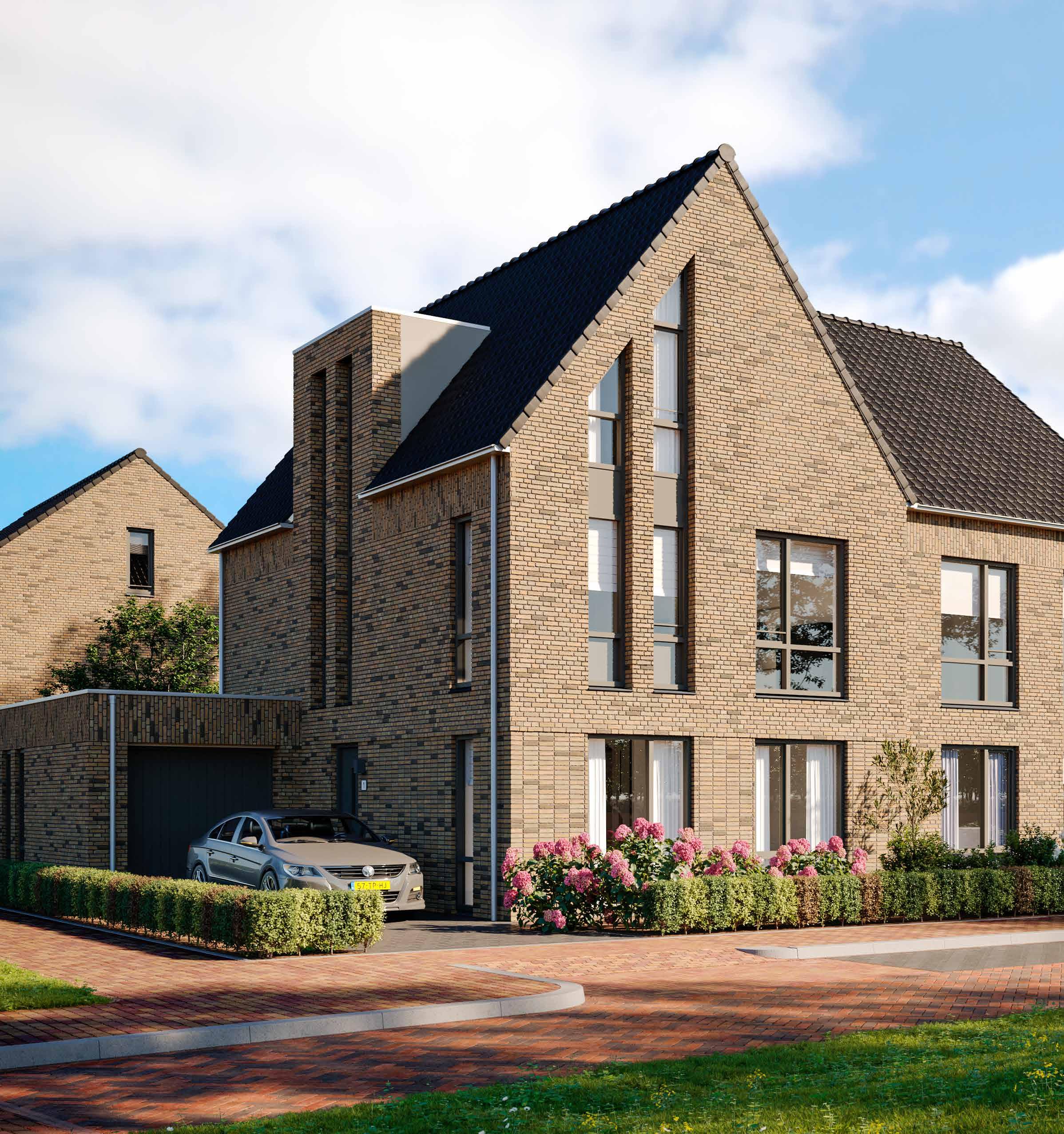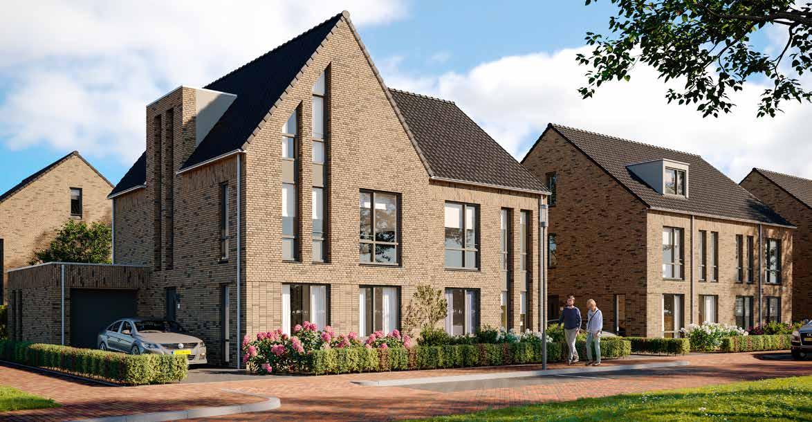 De realisatie van duurzaamheid begon op de tekentafel, waarna binnen die zorgvuldig ontworpen parkachtige omgeving 45 woningen zijn geplaatst: stoere tweekappers en stevige rij- en hoekwoningen in een grote variatie. De keuze uit vele al uitgewerkte opties en uitbreidingsmogelijkheden dragen er verder aan bij dat persoonlijke woonwensen en individualiteit tot hun recht kunnen komen. Goede isolatie, vloerverwarming en energiezuinig verwarmen verhogen het wooncomfort nog verder. Donkere en lichtere bakstenen gevels met fraai siermetselwerk worden afwisselend toegepast. Door de gevels hier en daar ten opzichte van elkaar te laten verspringen en accenten te leggen met ramen, kapvormen en dakdoorbrekingen, wordt een warme, dorpse sfeer gecreëerd. Hier geniet je ongetwijfeld van jarenlang zorgeloos woongenot.