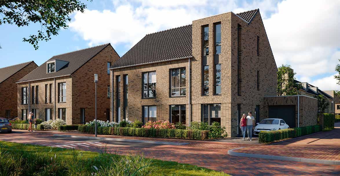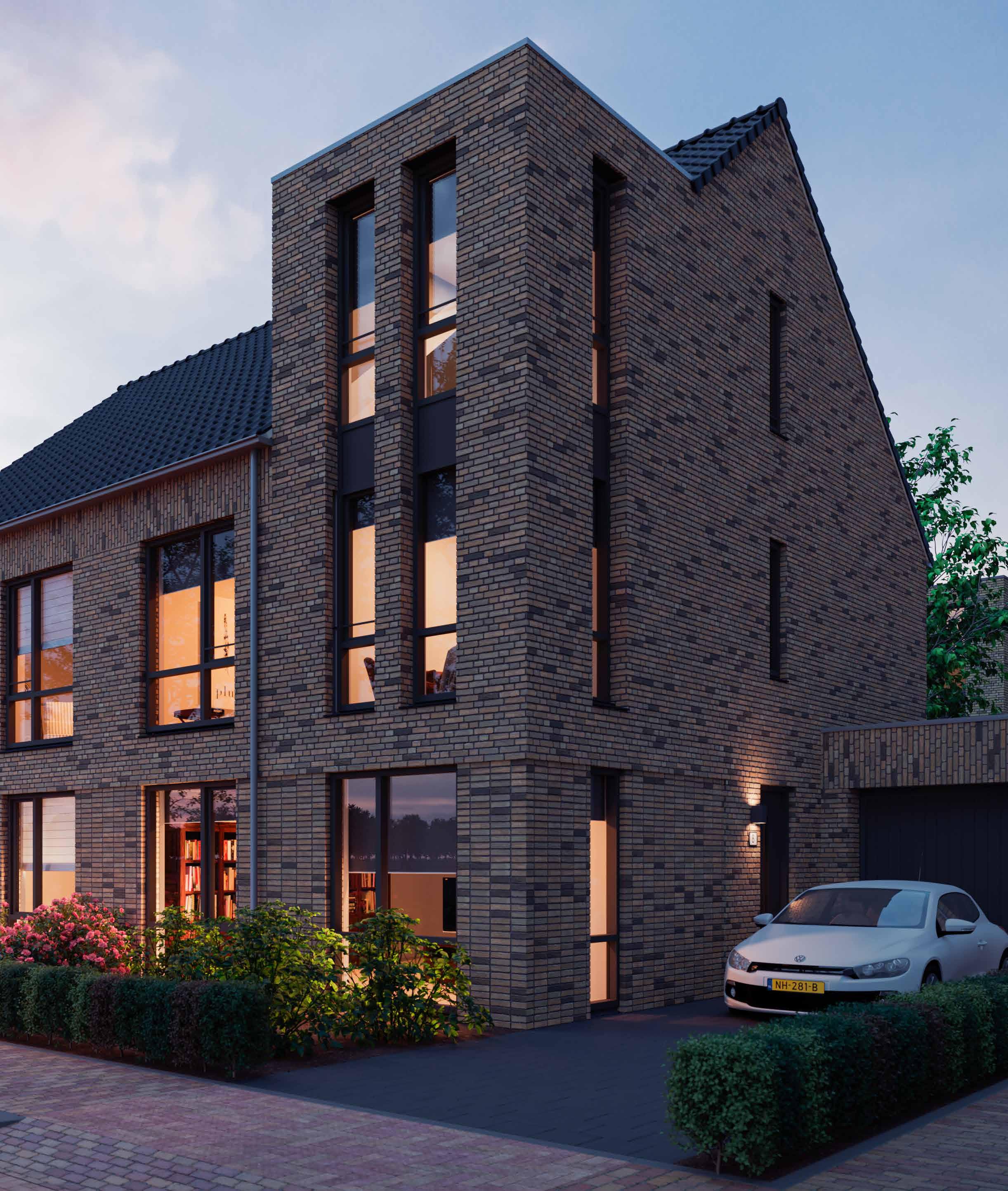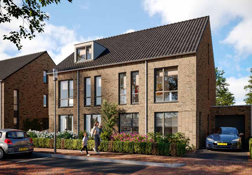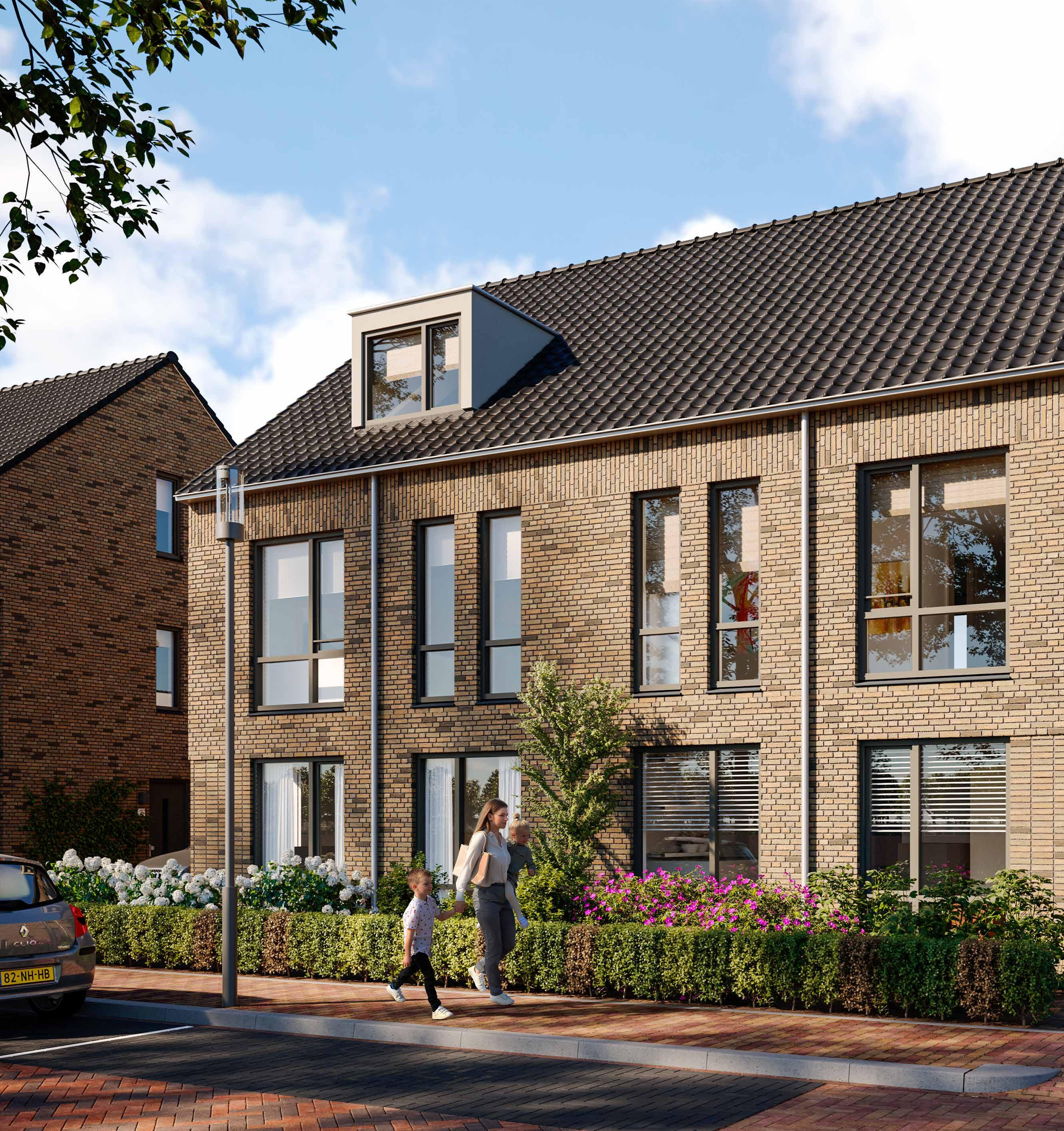 De realisatie van duurzaamheid begon op de tekentafel, waarna binnen die zorgvuldig ontworpen parkachtige omgeving 45 woningen zijn geplaatst: stoere tweekappers en stevige rij- en hoekwoningen in een grote variatie. De keuze uit vele al uitgewerkte opties en uitbreidingsmogelijkheden dragen er verder aan bij dat persoonlijke woonwensen en individualiteit tot hun recht kunnen komen. Goede isolatie, vloerverwarming en energiezuinig verwarmen verhogen het wooncomfort nog verder. Donkere en lichtere bakstenen gevels met fraai siermetselwerk worden afwisselend toegepast. Door de gevels hier en daar ten opzichte van elkaar te laten verspringen en accenten te leggen met ramen, kapvormen en dakdoorbrekingen, wordt een warme, dorpse sfeer gecreëerd. Hier geniet je ongetwijfeld van jarenlang zorgeloos woongenot.