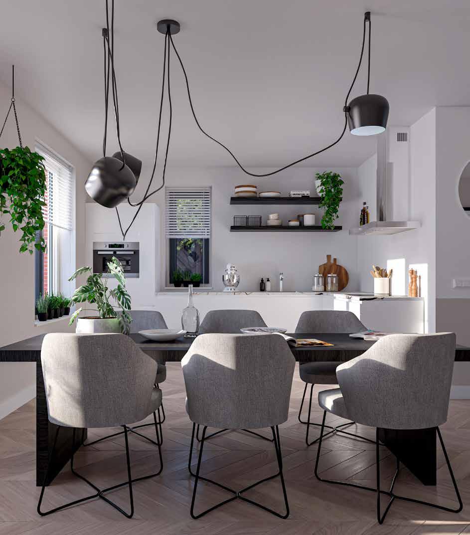 Dit Woon!magazine is bedoeld om de sfeer en de mogelijkheden van dit project te laten zien. De in dit Woon!magazine aangegeven keuken, huishoudelijke apparaten en inrichting c.q. aankleding geven een impressie van de mogelijkheden en behoren niet tot de standaard uitrusting van de woning. De juiste positie van radiatoren, elektra/schakelmateriaal, rookmelders, afzuigpunten t.b.v. ventilatie e.d. staan op de verkooptekeningen vermeld en zijn niet in de plattegronden opgenomen. Aan de beelden, illustraties, plattegronden en teksten in dit Woon!magazine kunnen geen rechten ontleend worden.