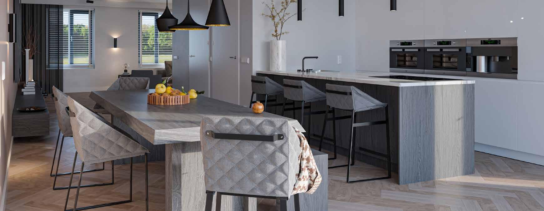 “In het weekend kook ik graag en neem ik hier ook echt de tijd voor. Een goede en mooie keuken vind ik dan ook erg belangrijk. In de showroom in Waardenburg heb ik mijn ogen uitgekeken. Alle elementen in alle varianten zijn ook daadwer kelijk aanwezig, zodat je niet hoeft te kiezen uit een boekje. Je kunt dingen zien en voelen. Dat maakt beslissen een stuk makkelijker.” Het grote voor