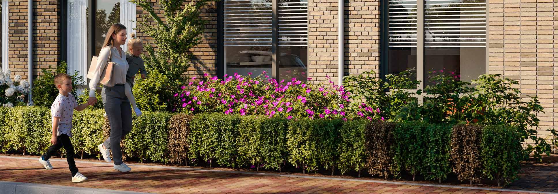 Duurzaamheid betekent naar onze mening het zorgvuldig ontwerpen van een mooie woonbuurt. Als bewoner moet je je er thuisvoelen. De woningen zelf zijn comfortabel, goed geïsoleerd en voorzien van een zuinige, gebruiksvriendelijke installatie. Maar ook in de wijk zelf is duurzaamheid troef: regenwater wordt bovengronds afgevoerd naar wadi’s in het parkachtig gebied. Om ook insecten en andere dieren de ruimte te geven, worden speciale voorzieningen getroffen.