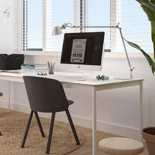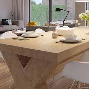- robuust houten blad en beige stoelen met zwart onderstelvormt de natuurlijke verbinding tussen keuken- en zitgedeelte. De Secto designlamp is hier een ware eyecatcher.