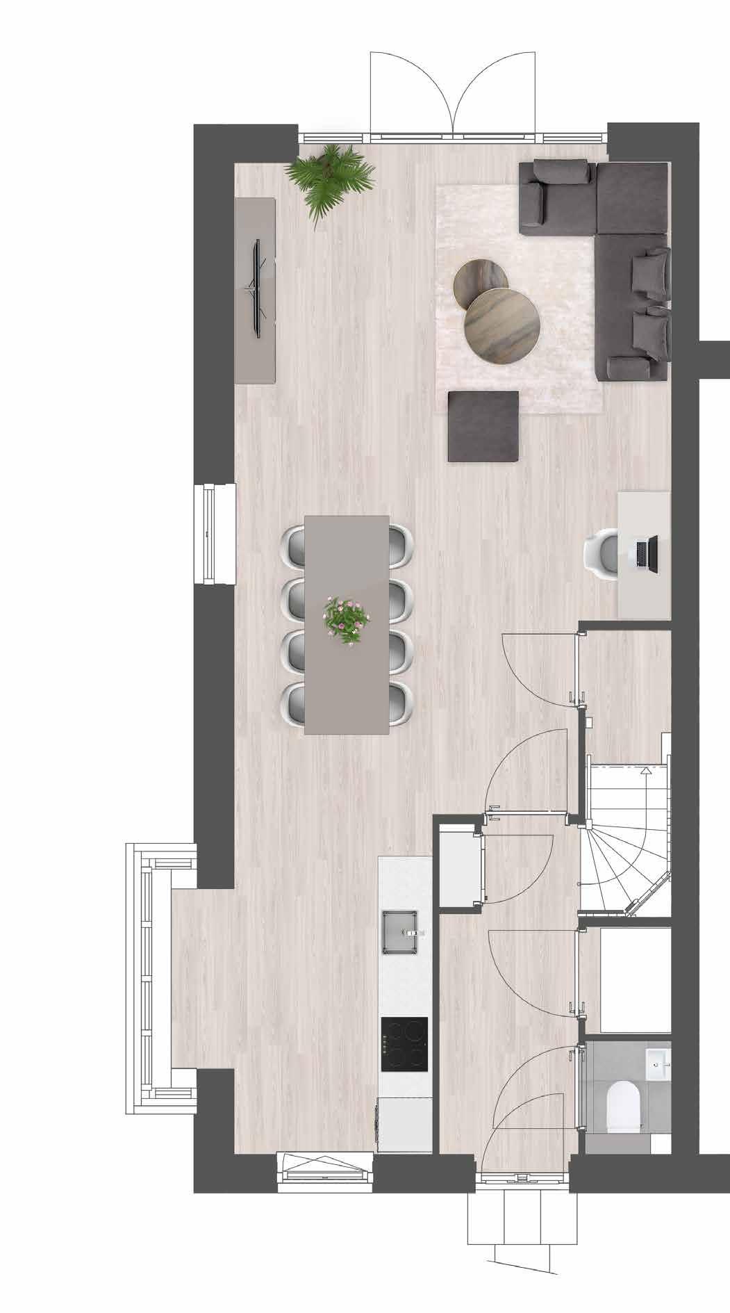 Dit Woon!magazine is bedoeld om de sfeer en de mogelijkheden van dit project te laten zien. De in dit Woon!magazine aangegeven keuken, huishoudelijke apparaten en inrichting c.q. aankleding geven een impressie van de mogelijkheden en behoren niet tot de standaard uitrusting van de woning. De juiste positie van elektra/schakelmateriaal, rookmelders, afzuigpunten t.b.v. ventilatie e.d. staan op de verkooptekeningen vermeld en zijn niet in de plattegronden opgenomen. Aan de beelden, illustraties, plattegronden en teksten in dit Woon!magazine kunnen geen rechten ontleend worden.