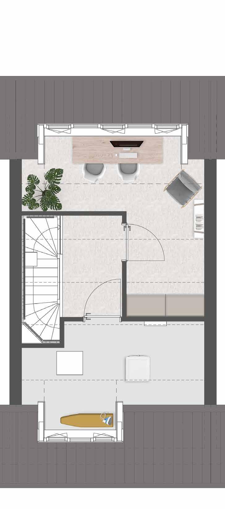 • Ruime vrij indeelbare zolder met witgoedaansluiting