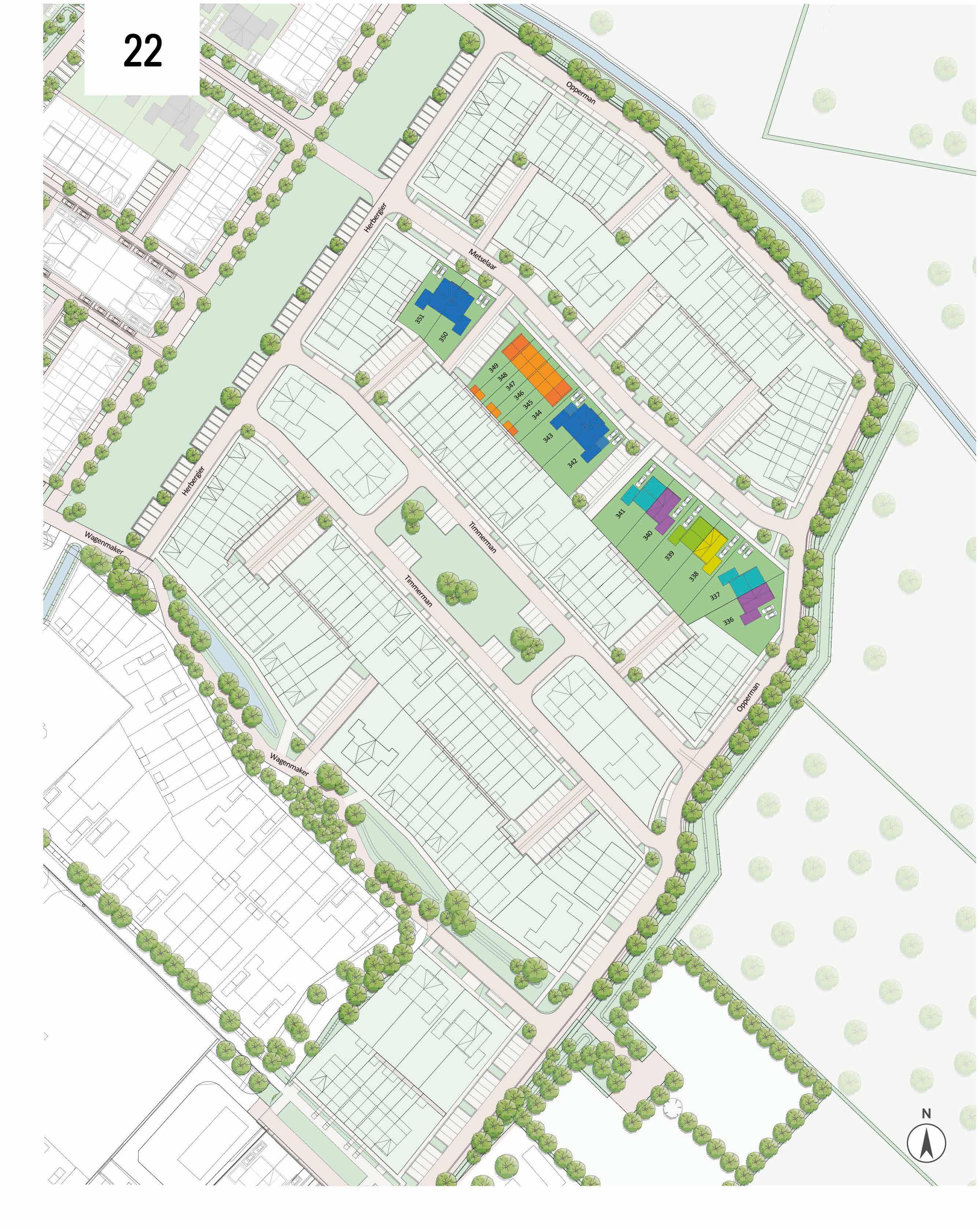 Naast het stedenbouwkundig plan onderstreept het inrichtingsplan, geënt op het landschap rondom, de dorpse beleving in deze nieuwe, kleinschalige wijk volop afwisseling. Wezenlijk onderdeel van het ontwerp is de groene invulling. Op vele plekken tref je kleine groepen bomen aan. De groene, aangename setting, de ruimte en het charmante karakter van de woningen zorgen voor optimaal woongenot tot in lengte van jaren.