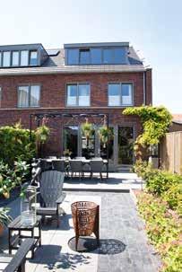 Bij goed weer kan hij de leefruimte op de benedenverdieping nog aanzienlijk vergroten dankzij de openslaande tuindeuren. “Dat geeft toch een veel ruimtelijker indruk dan een schuifpui.” De tuin biedt met een eettafel tegen het huis aan en een loungehoek aan de achterkant volop mogelijkheden voor een aangenaam verblijf.