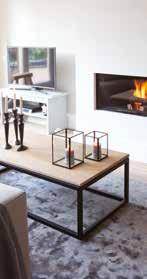 Het resultaat mag er zijn. Afwisseling in de manier waarop de boeken zijn geplaatst, enkele andere kleurige elementen en voldoende zicht op de witte achterwand maken deze kast tot het pronkstuk van de woonkamer. In combinatie met de lichtgrijze zithoek en de bio-ethanolhaard een heerlijke plek in de ruime woonkamer. Over de haard zegt Jeroen: “Om de grote open ruimte te breken hebben we gekozen voor een doorkijkhaard. Hierdoor krijg je vanaf de bank het gevoel dat je in een aparte ruimte zit, terwijl je toch contact houdt met de keuken.” Kristy en Jeroen hebben het interieur van de woonkamer verder grotendeels rustig en tijdloos gehouden, met vooral lichte kleuren en een warme houten vloer. Ook het metalen onderstel van de eettafel met een zwart composiet blad hebben vader en zoon zelf gelast.