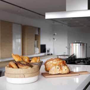 “We hebben gekozen voor een vrij lange keuken, met een lang aanrecht. In het Warenhuys hebben ze ons goed geadviseerd over de inrichting. We hebben het lekker praktisch gehouden; we zijn geen mensen die uren in de keuken staan. Veel werkruimte, handige apparatuur, alles in mat witte kleuren en voldoende plek om er –dankzij 4 krukken – ook te kunnen ontbijten.”