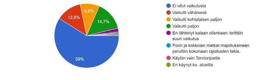 Vaihtoehtoina: Ei ollut vaikutusta / Vaikutti vähäisesti / Vaikutti kohtaisen paljon / Vaikutti paljon / En lähtenyt kalaan ollenkaan-erittäin suuri vaikutus / Muu: