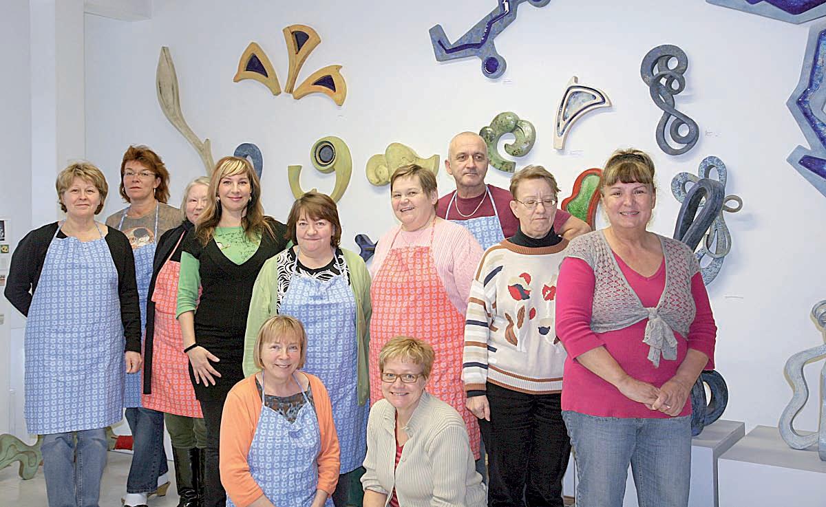 Keramiikkakurssilaiset taiteilija Johanna RytkölÀn ateljeella Vantaalla