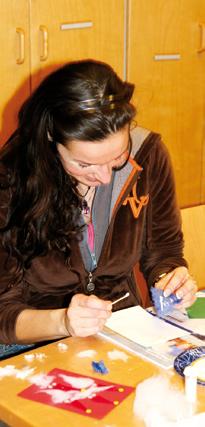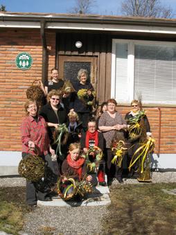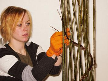Anu Porema punoo köynnöskukalle telinettä pajukurssilla