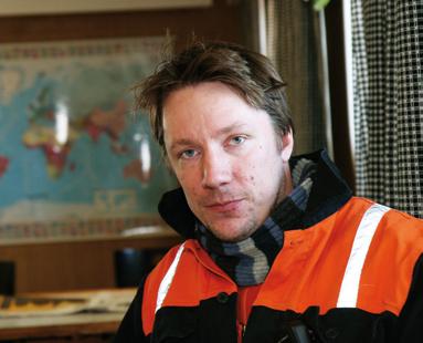 Det är försten Antero Virtanen och styrman Tommi Tuominen som är med och lyfter med däcksmännen. Befälhavare Hautala berättar att man ombord inte brukar välja vad man gör. På däck jobbar man till-