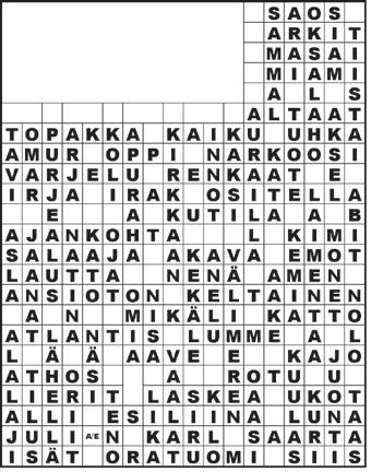 Ristikon oikein ratkaisseiden kesken arvotaan kirjapalkkinto. Lähetä ratkaisusi osoitteella: MEPA, PL 170, 00161 Helsinki