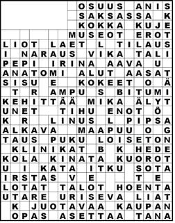 Ristikon oikein ratkaisseiden kesken arvotaan kirjapalkkinto. Lähetä ratkaisusi osoitteella: MEPA, PL 170, 00161 Helsinki