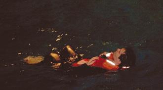 ljusstrimmorna det lämnar efter sig. Norrmännen konstaterade i början av 90-talet att bilden hade anknytning till sjölivet, sjömannen reste med flyg till sitt fartyg.