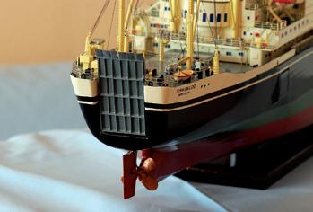 Patrician kansirakennelman Lappalainen teki männystä kerros kerrokselta liimaamalla. Pienoismalli valmistui työtörnin aikana. Hän teki vanerista kuljetuslaatikon ja sai mallin ehjänä kotiin, kun porukka lähti lomille Vancouverista jonne laiva oli saapunut Kiinasta.