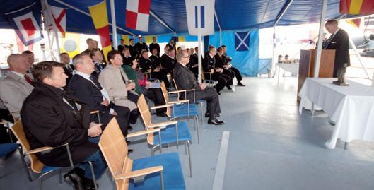 Iltapäivän lopuksi porukka siirtyi Merikoulun takilaan, jossa nautittiin aluksi Mepan tarjoama lohisoppa kyytipoikineen. Kotkan Merimiespalvelutoimiston asiamies Risto Nikula avasi tilaisuuden, ja toiminnanjohtaja Martti Karlsson toivotti vieraat tervetulleeksi. SLHY:n (Suomen Laivahistoriallinen Yhdistys) terveiset toi Hannu Hillo