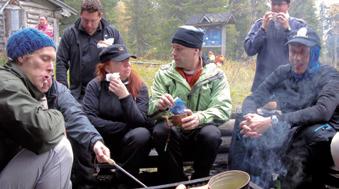 Sjömanskockarna i Kotka hade lyckats trolla fram en läcker soppa på lax. Alla doppade skeden i soppan och hittade också läckerbitar.