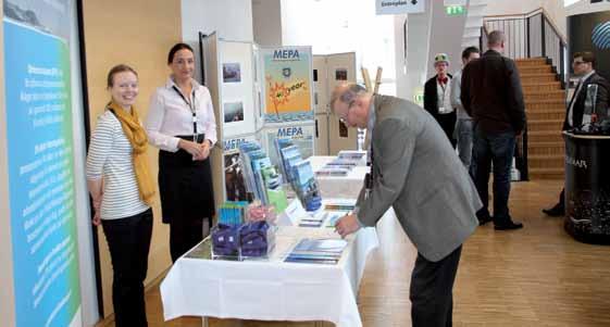 Mepan ja Merimieseläkekassan osastot olivat kulttuuri- ja kongressikeskus Alandican toisessa kerroksessa. Eva Westerbacka ja Michaela Björklund esittelevät