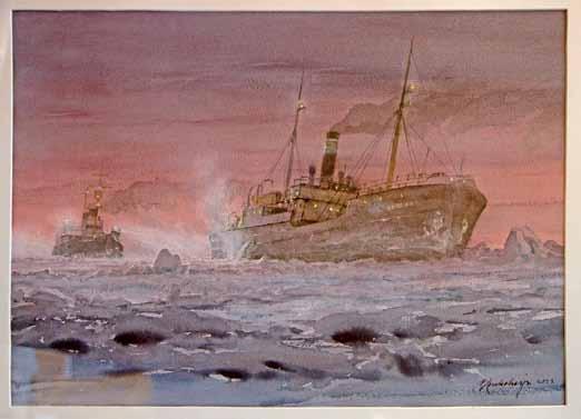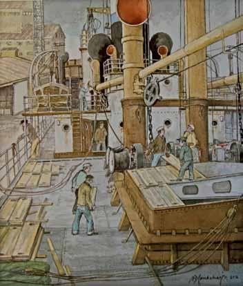Arvostettu merimiestaiteilija Risto Honkaharju luovutti akvarellin ”Hietalahdenranta” ravintola Salvelle, jonka kanta-asiakkaisiin hän seilatessaan kuului. Ravintolapäällikkö Mika Elo etsii hienolle taululle arvoisensa paikan Salven paljon nähneiltä ja merimiesjuttuja kuulleilta seiniltä.