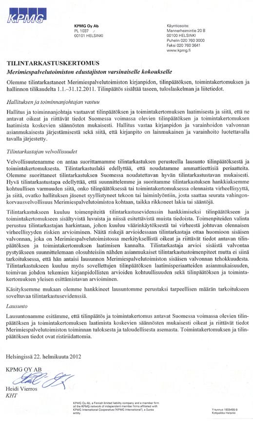 Pääkirjoitus: Työniloa!! …………………………… 3 Maarianhaminan Aland Maritime Day veti väkeä, Mepa mukana …………………… 4 Rosella –miehistö ja kalusto kunnossa 8 Shipping Training Days – varustamopäivät merenkulun opiskelijoille ………………………… 12 IT-alalta merille 16 Merimiespalvelutoimiston hallituksen toimintakertomus vuodelta 2011 ………………… 18 M/s Gabriellan ykköskokki Kari Kuusisto 32 13.500 laivapostikortin kokoelma ……………… 36 Tervakaupunki Vaasa katsoi merelle ……………… 40 Mukavat kesäjuhlat Merimieskeskuksessa 44 Tankkilaiva Tornadon kannelta Merimieskeskuksen johtajaksi 45 Telakalla ………………………………………… 46 Äänimeri- nettiyhteisön tutustuminen Merikeskus Vellamoon 48 Yövuorossa Vuosaaressa ………………………… 50 Tykinlaukaus juhlisti Helsinki-päivää ja s/s Hyökyn satavuotista taivalta. 54 MEPAn kirjasto suosittelee ……………………… 55 Langh Ship voitti laivajoukkueiden jääkiekkoturnauksen 59 Kesä alkoi MEPAn golf –kisasta ………………… 60 Harrastetöitä Mepan näyttelyissä 62 Nimitysuutisia …………………………………… 66 Merenkulkijoita kevään kursseilla ………………… 61 Ristikko 70 Laitureilla ja lankongeilla ………………………… 73 Tulevia kursseja ………………………………… 75