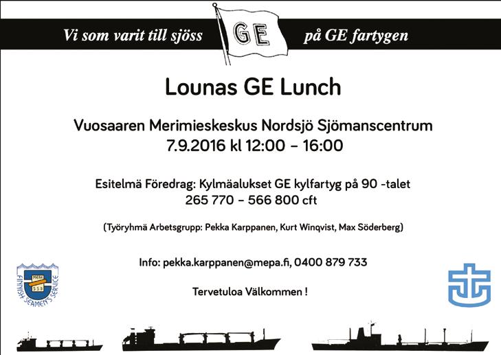 3 Pääkirjoitus Ledare 4 Satamahinaajat Hamnbogserare 10 Finnlinesin laivalla Saksaan 11 Nybörjare 12 Prima Fortuna 14 Trafi Meri 2016 18 Sjöfartens dag 22 Safety and Survival Training 26 Hurtigruten osa 2 30 Kulttuuria Kotkassa Sjömans- och hamnkultur 34 Ravintola Salve restaurant