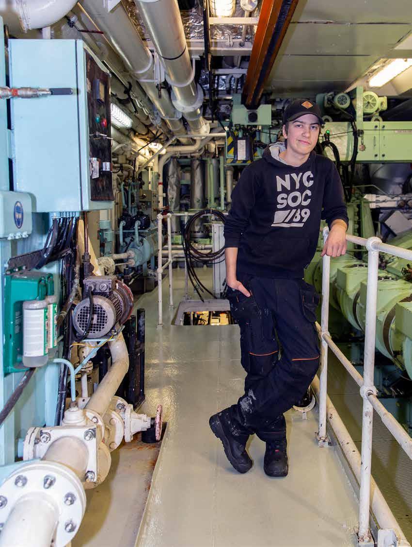 – Det är snart dags för lunch. Här på Sisu finns ett centralkök och en mäss, dit alla kommer för att äta, berättar Lasse Lars Stigzelius som vanligtvis är steward på J/M Voima.